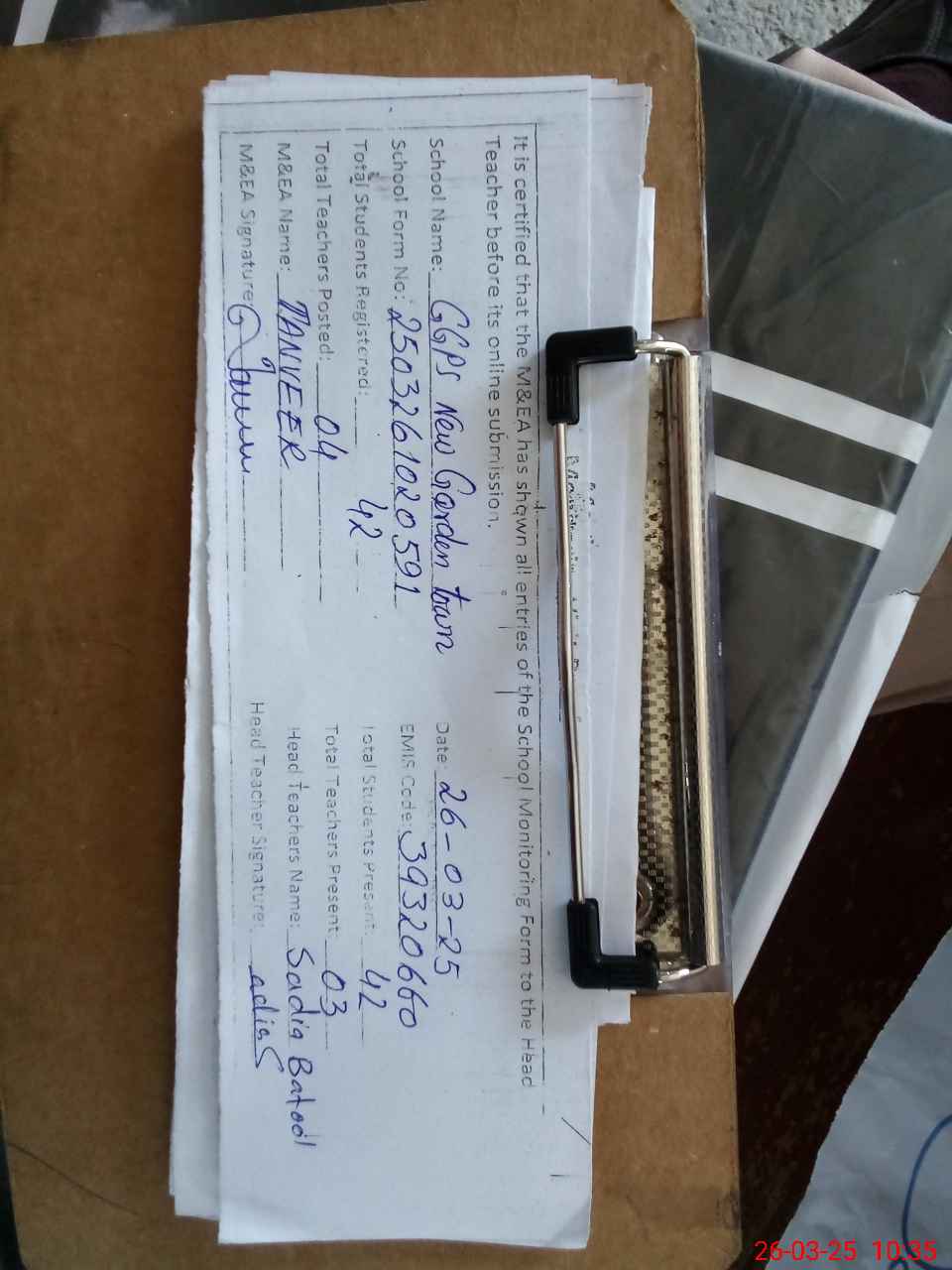 | Certified that this School was Inspected by the Undersigned MEA/DMO Today and the Information Stated Above is as Per Record. | |||||