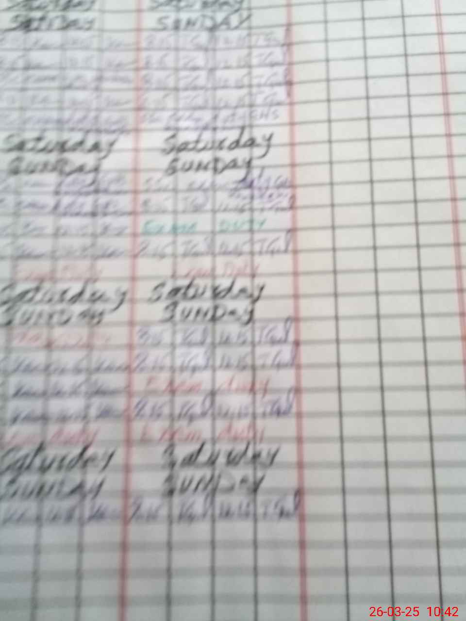 | 61**** | Na**** Iq**** | PST | Regular | 0 | 0 | 0 | 0 | 0 | 0 | 0 | 0 | 0 | Maternity |
