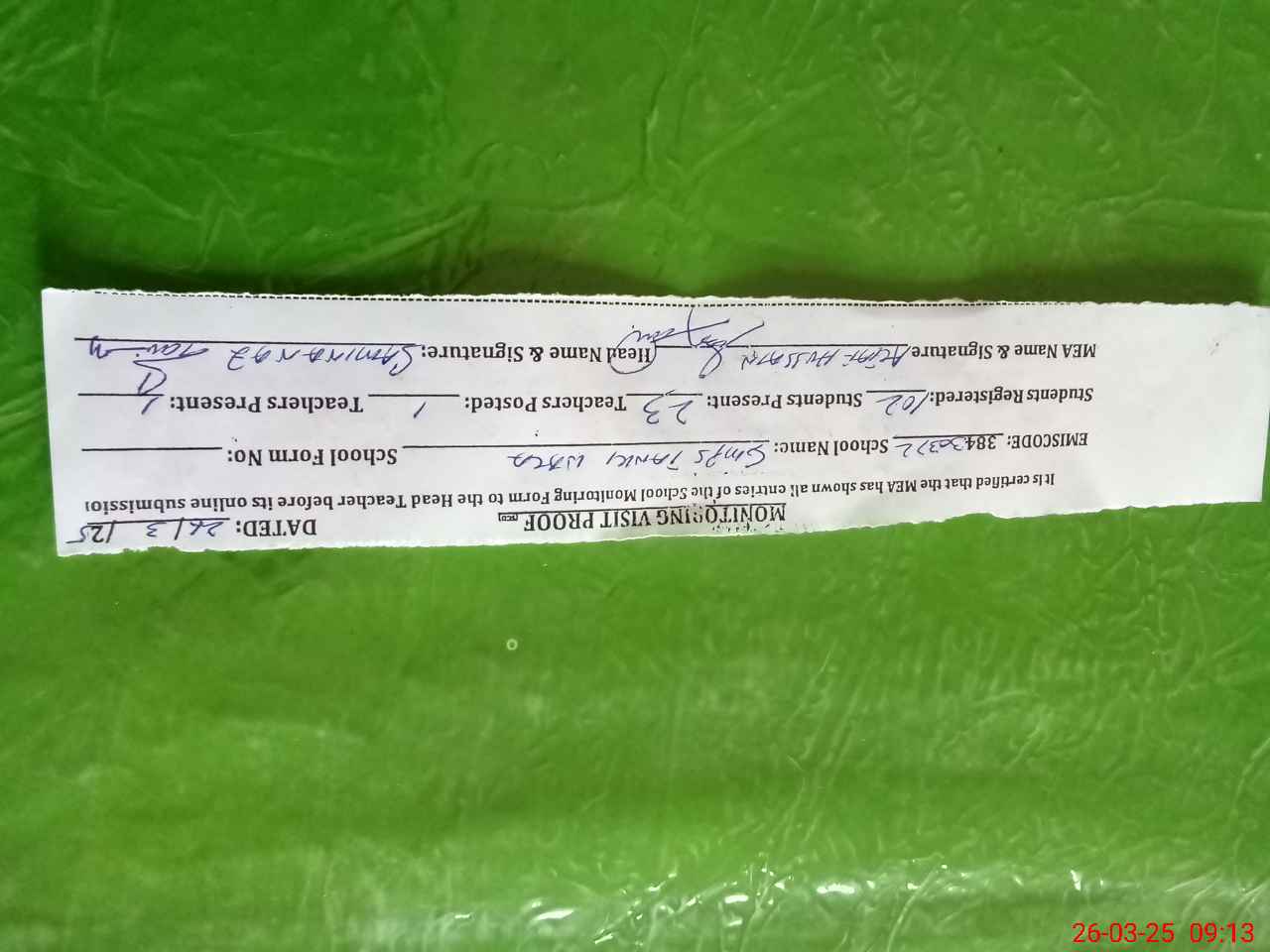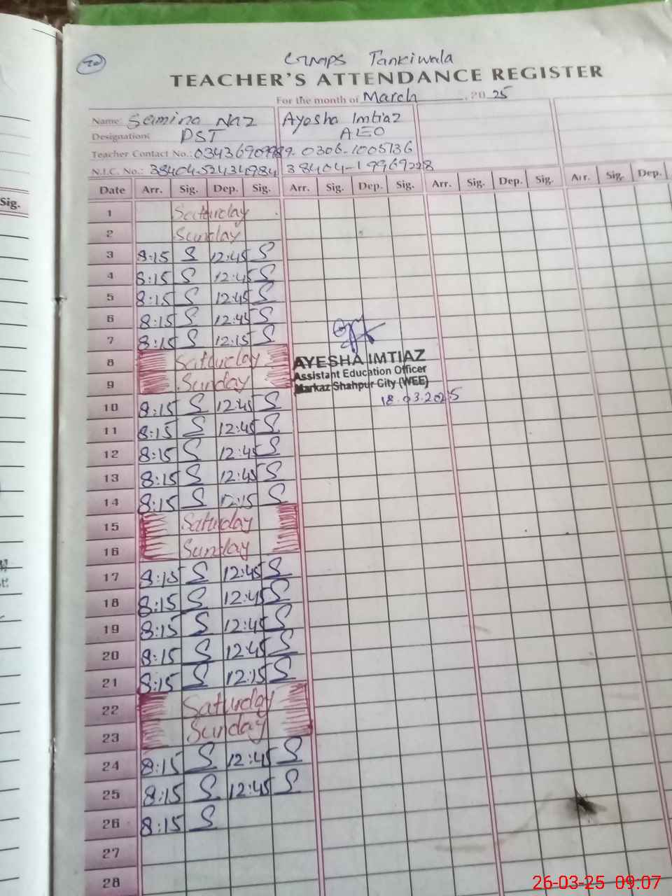 | Name: SA**** NA**** Designation: (School Headmaster's/Headmistress's) PST Phone/Cell Number: 03**** |
