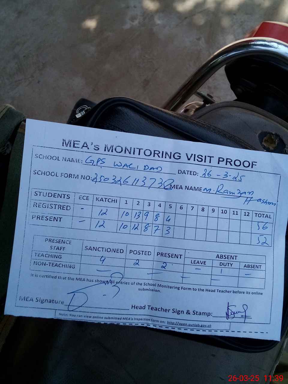 | EMIS Code: 36410522 | Name of School: GPS WALI DAD, P/O HAJI PUR, KABIRWALA | |||