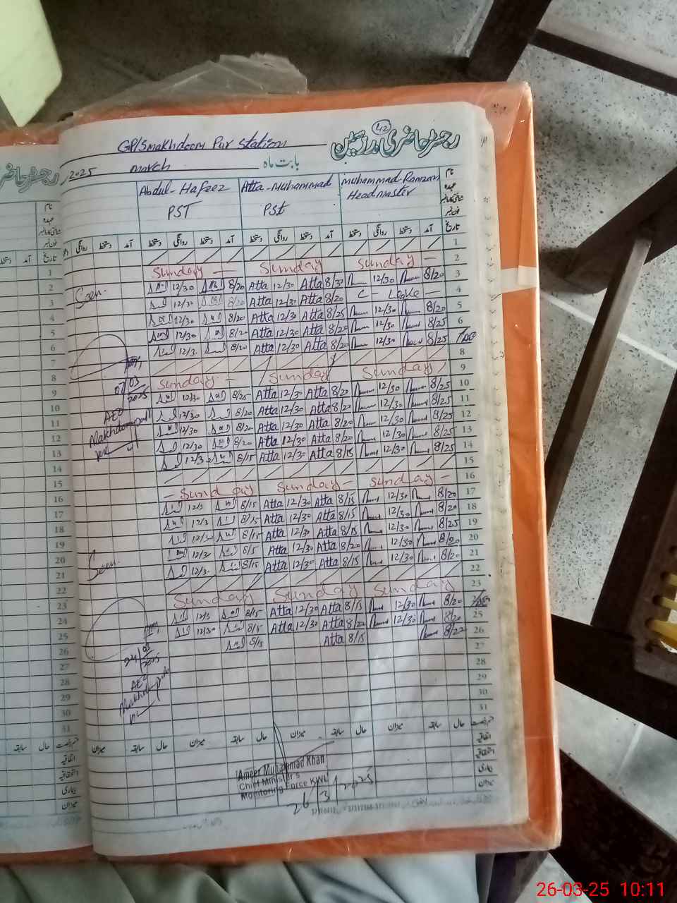 | Name: M.**** Designation: (School Headmaster's/Headmistress's) PST Phone/Cell Number: 03**** |