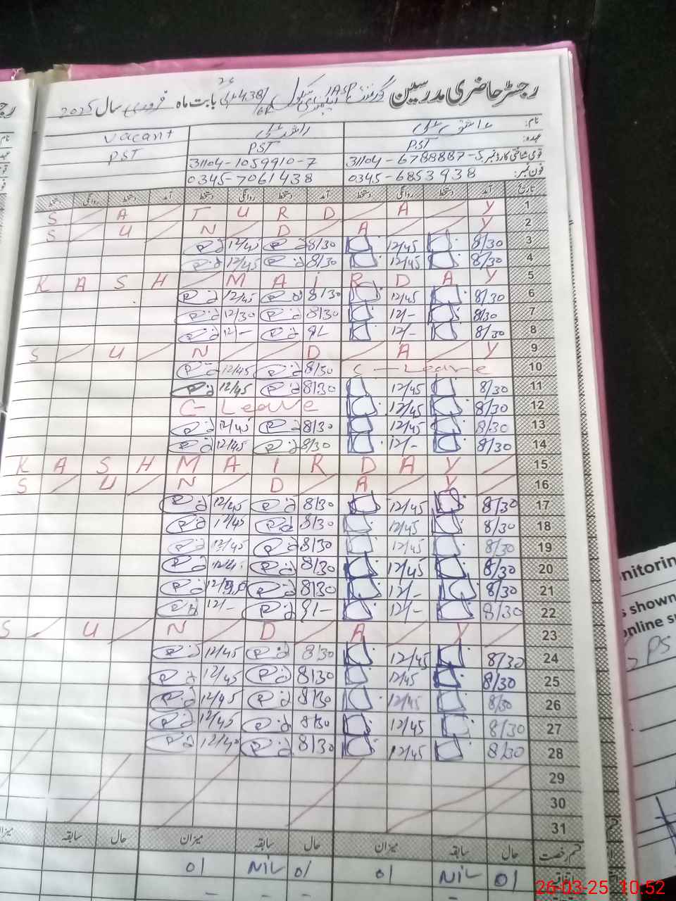 | Name: AS**** AL**** Designation: (School Headmaster's/Headmistress's) PTC/JV Phone/Cell Number: 03**** |