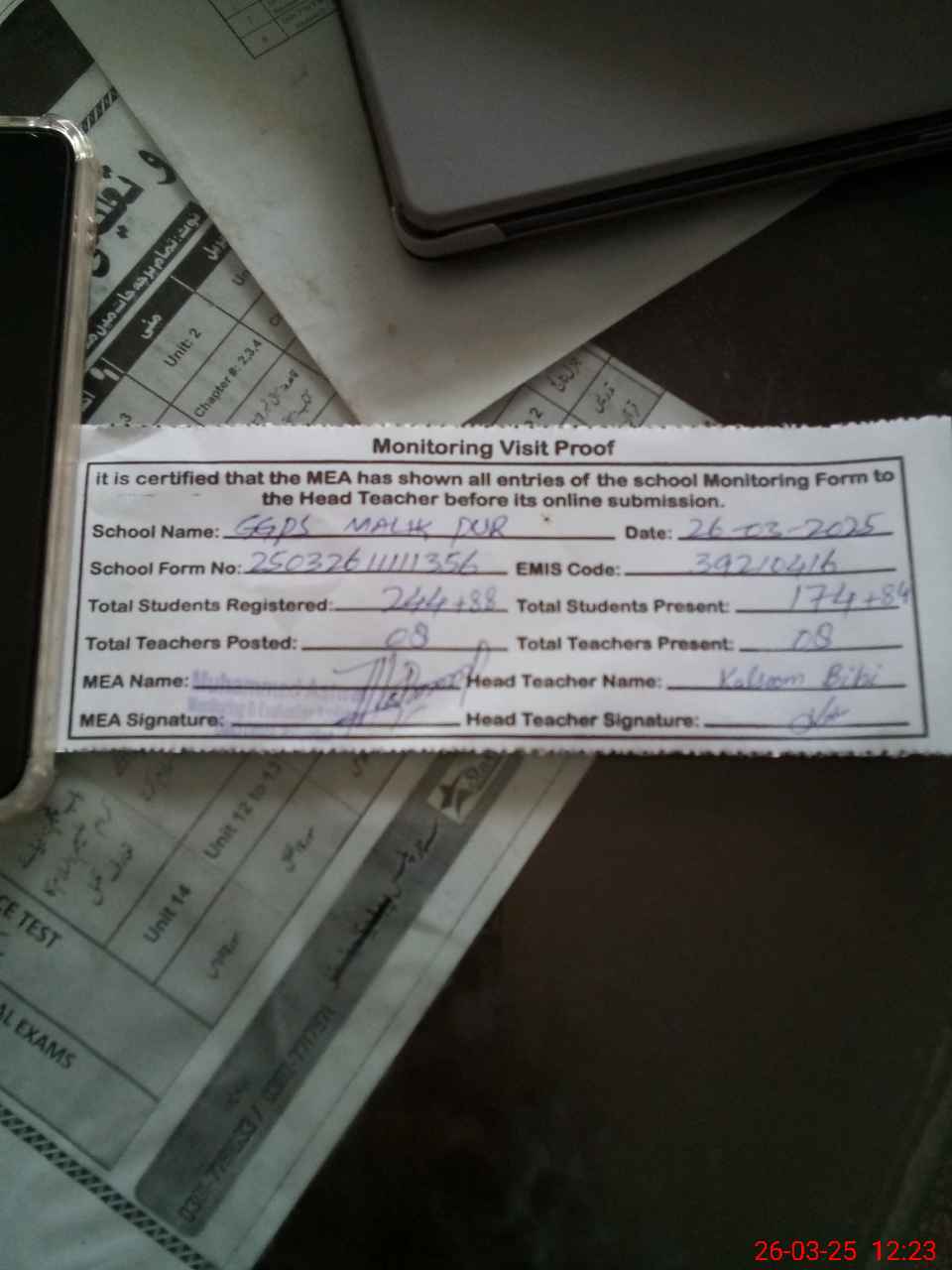 | EMIS Code: 39210416 | Name of School: GGPS MALIK PUR | |||