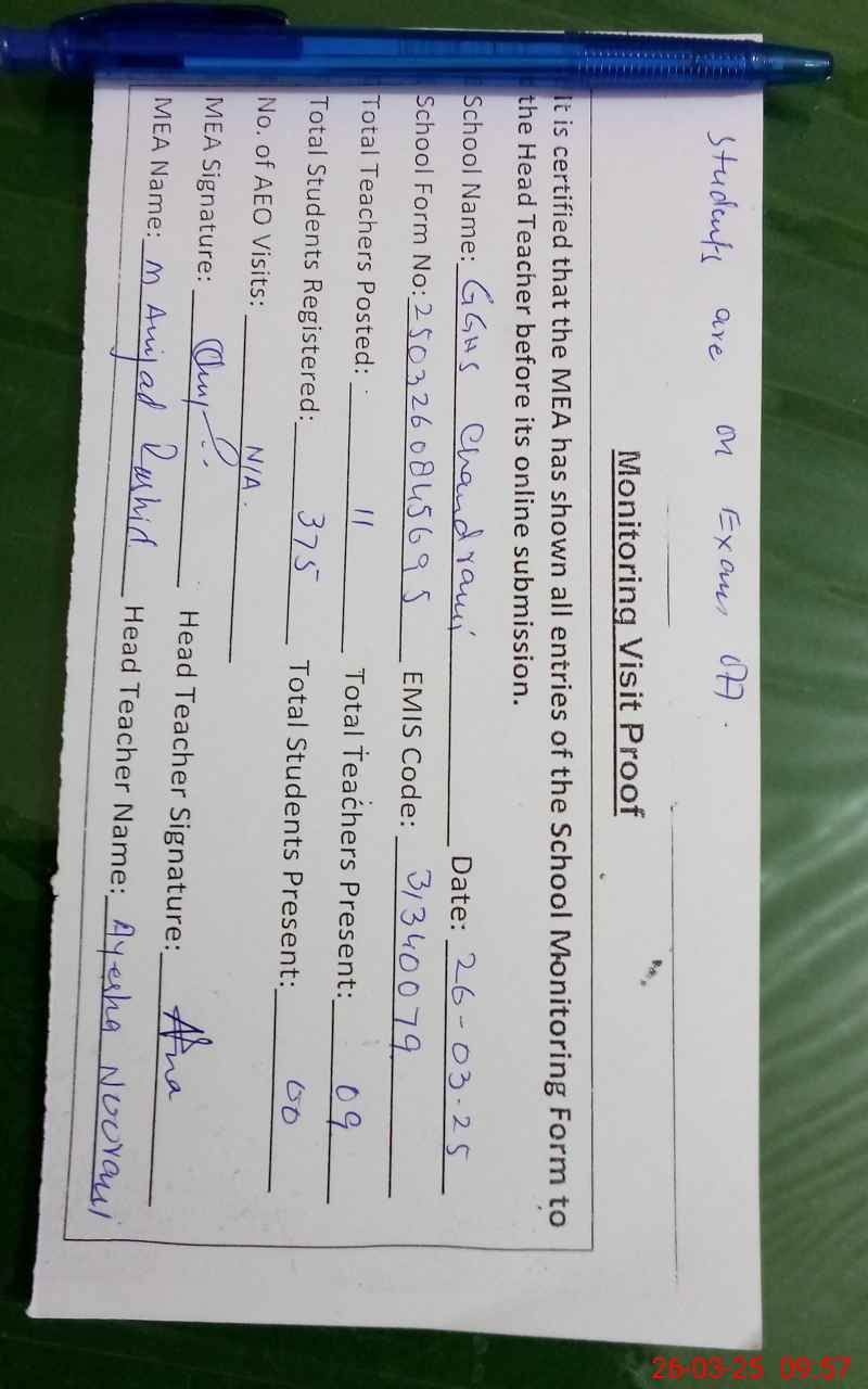 | EMIS Code: 31340079 | Name of School: GGHS CHAND RAMI | |||