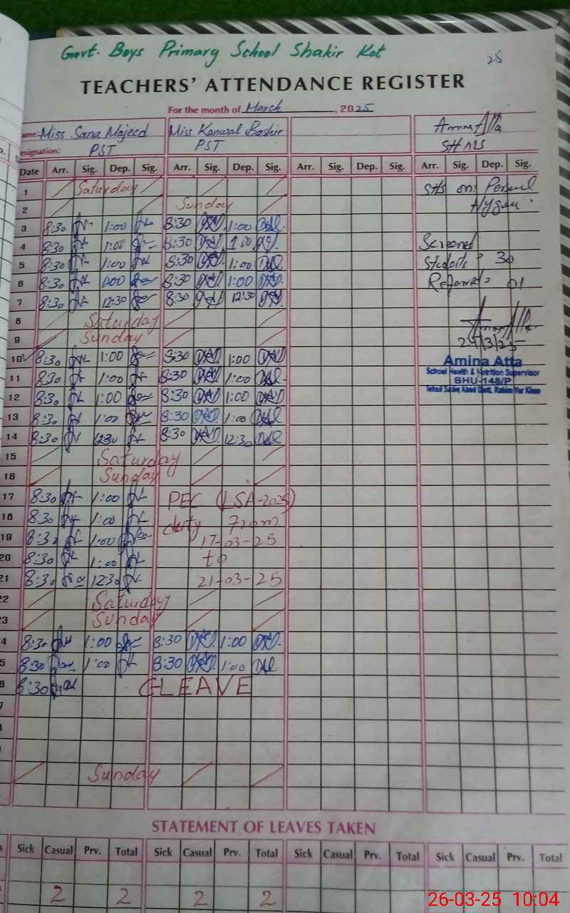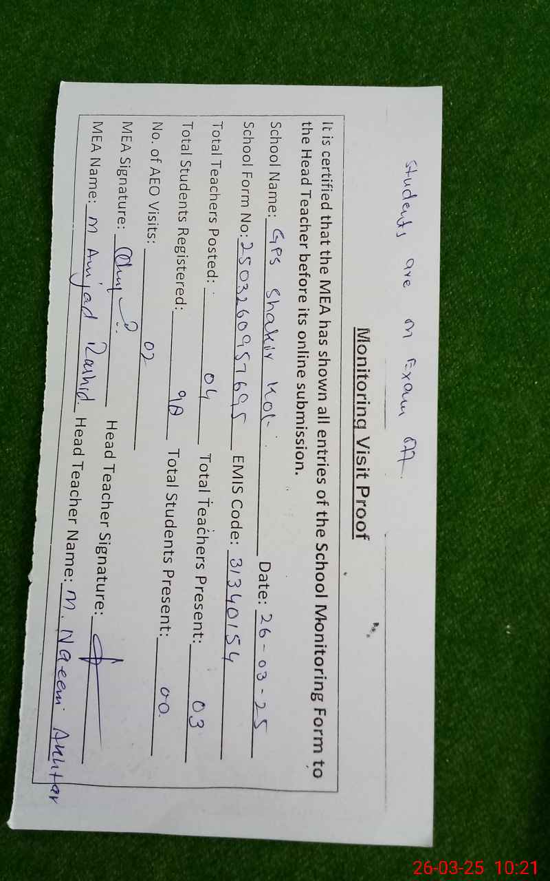 | EMIS Code: 31340154 | Name of School: GPS SHAKIR KOT | |||