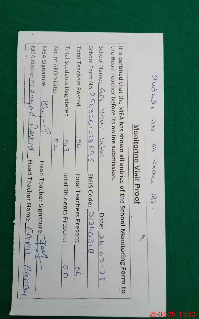 | EMIS Code: 31340318 | Name of School: GPS BASTI LATKI | |||