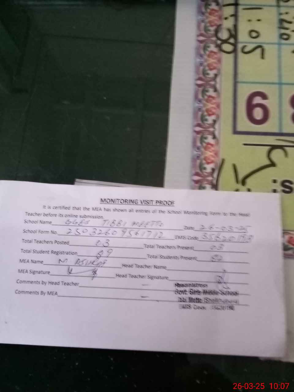 | Certified that this School was Inspected by the Undersigned MEA/DMO Today and the Information Stated Above is as Per Record. | |||||