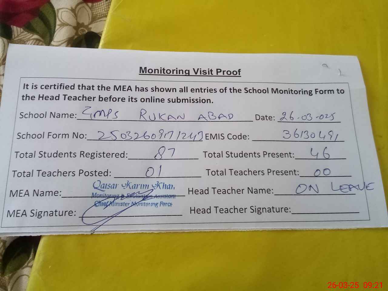 | EMIS Code: 36130491 | Name of School: GMPS RUKAN ABAD | |||