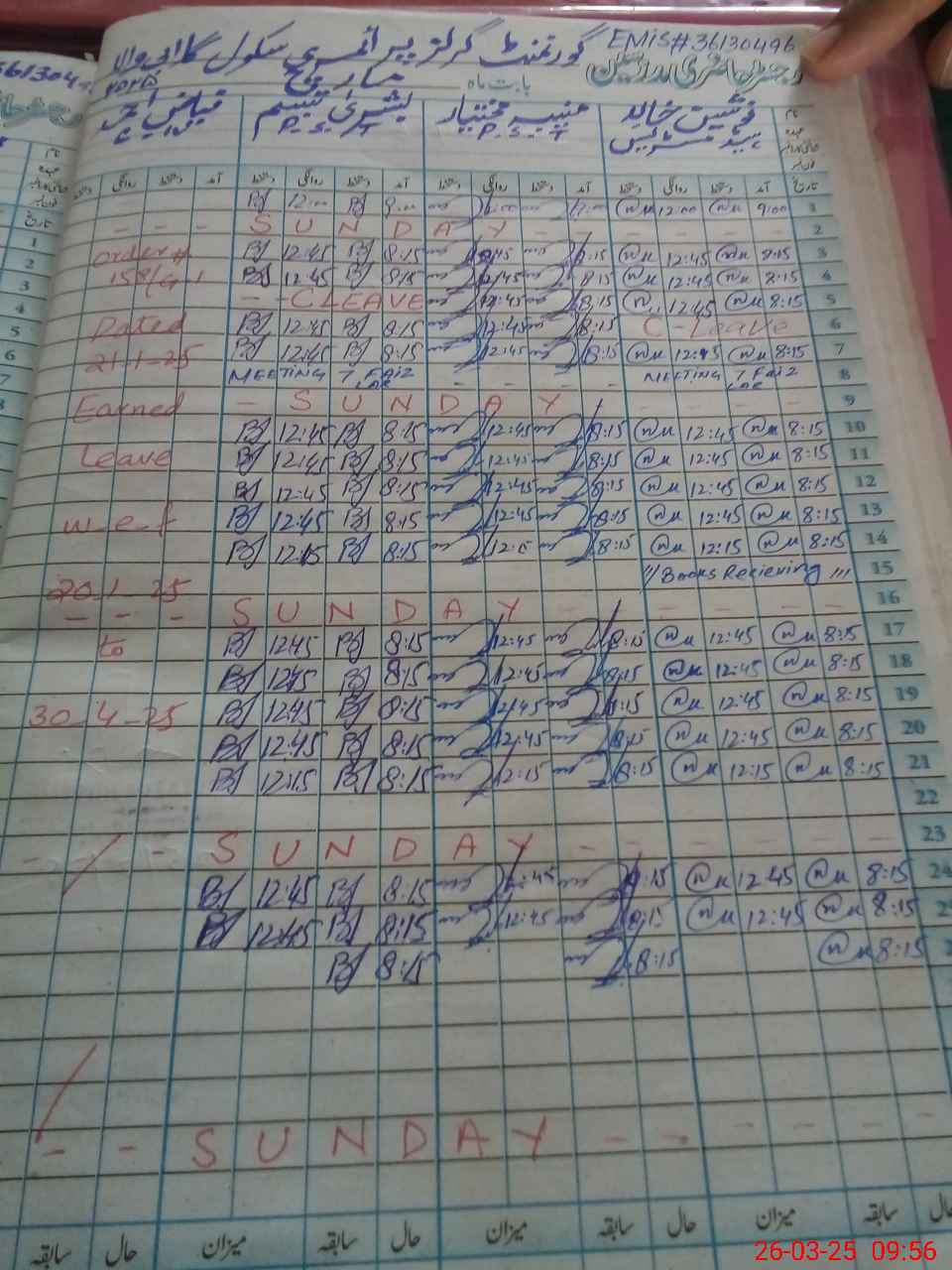| Name: No**** Kh**** Designation: (School Headmaster's/Headmistress's) PST Phone/Cell Number: 03**** |