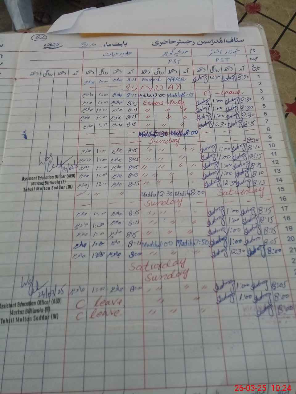| Leave | Duty | Absent | Maternity | Medical | Ex- Pak |