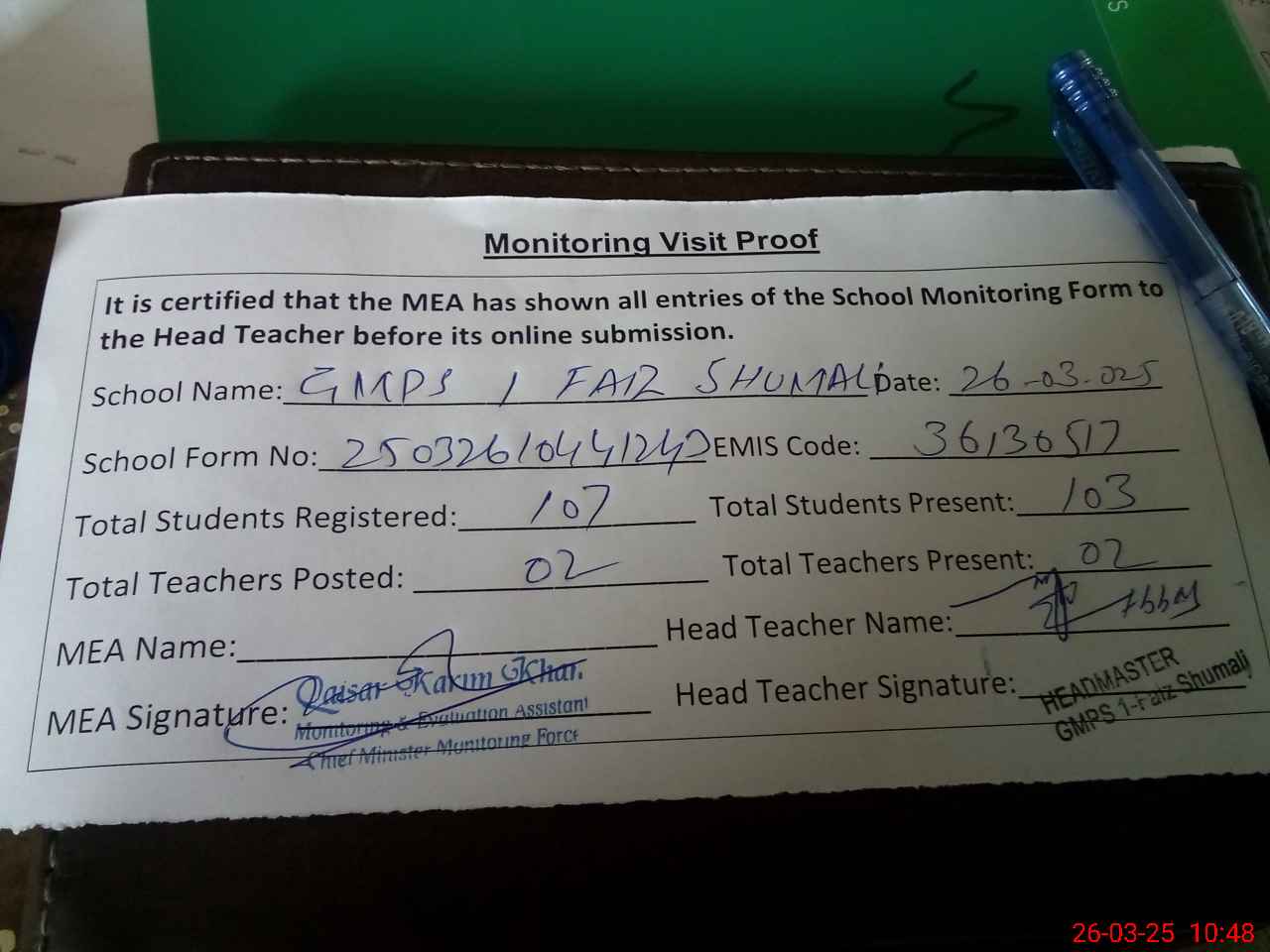 | EMIS Code: 36130517 | Name of School: GMPS 1 FAIZ SHUMALI P/O LAR | |||