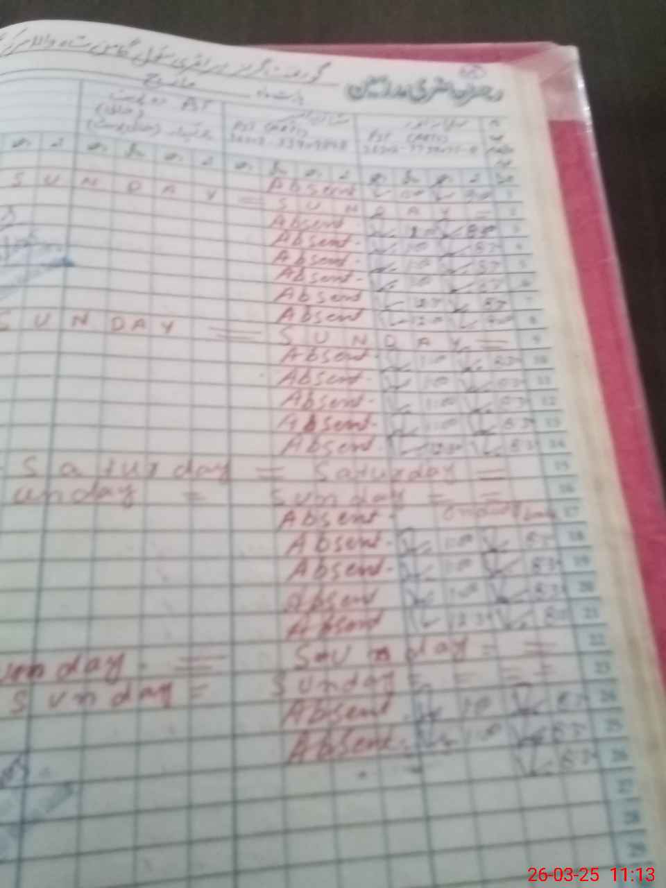 | CNIC | Full Name | Designation | R/C | Absence During Last Calender Month |