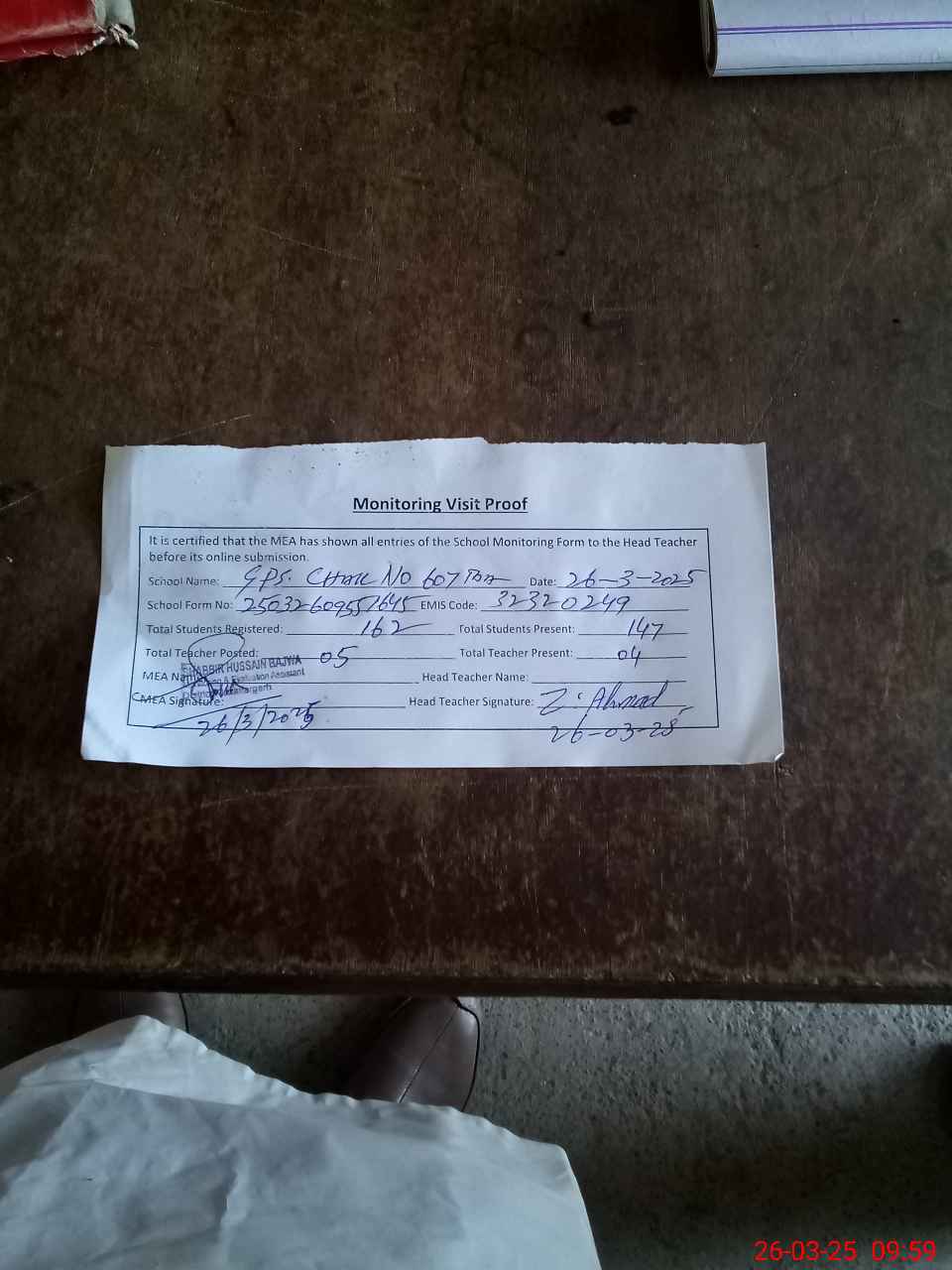 | EMIS Code: 32320249 | Name of School: GPS CHAK NO.607 TDA | |||