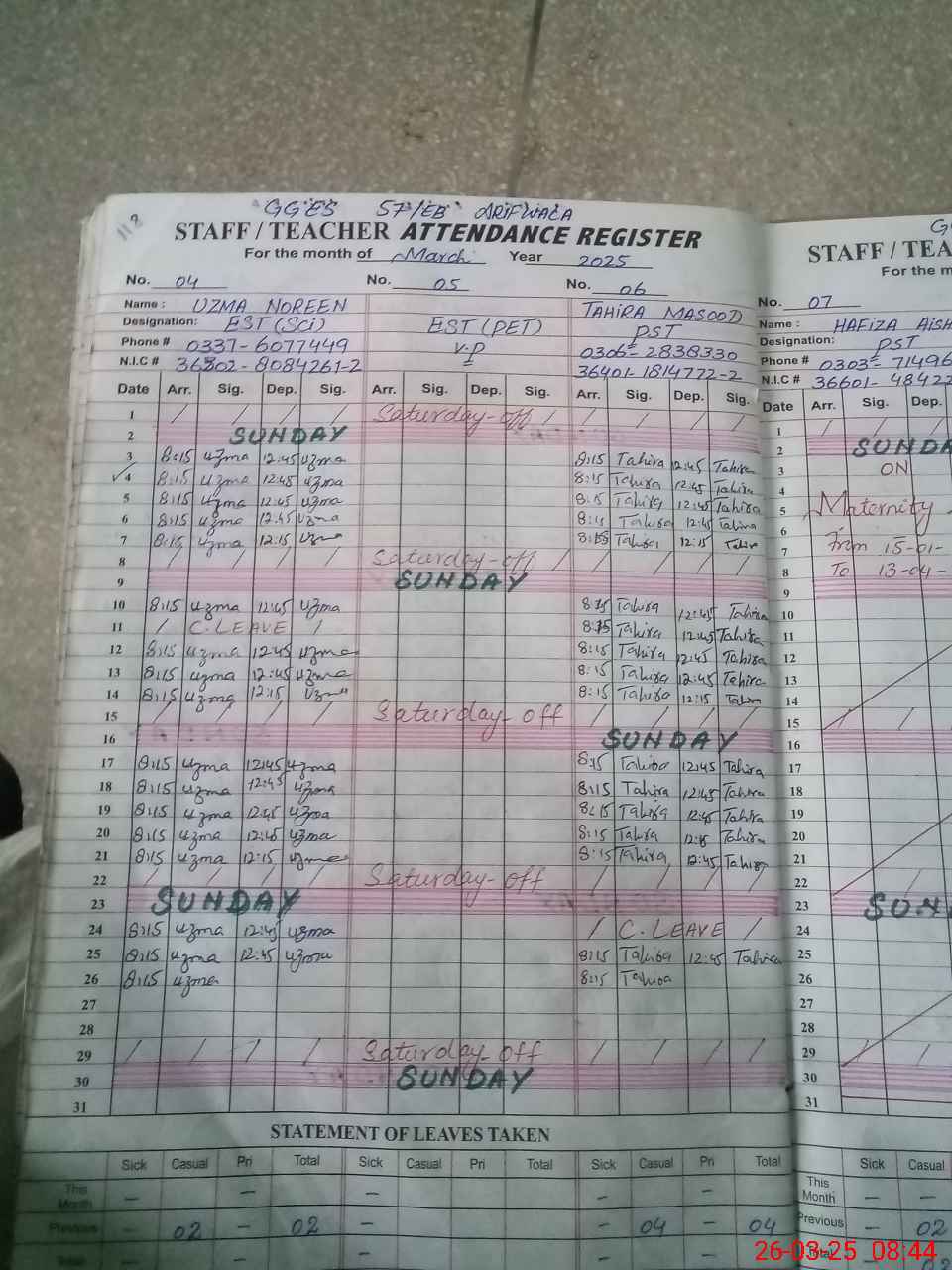 | 36**** | Ha**** Ai**** Am**** | PST | Regular | 30 | 0 | 0 | 30 | 0 | 0 | 0 | 0 | 0 | Maternity |