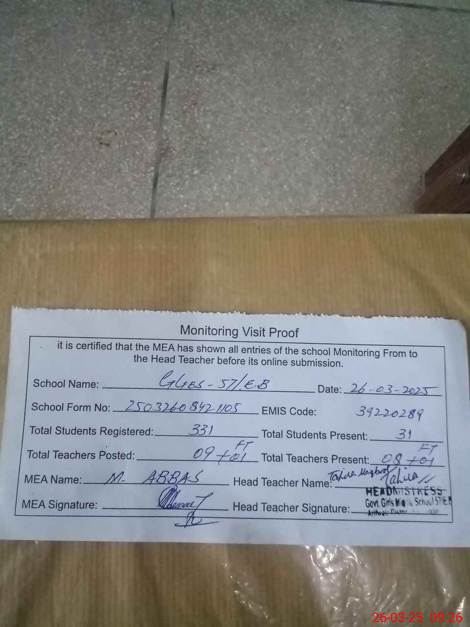 | EMIS Code: 39220289 | Name of School: GGES 57 EB | |||