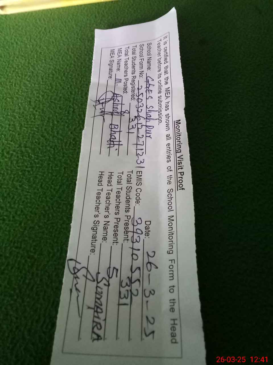 | EMIS Code: 39310552 | Name of School: GGES SHAH PUR | |||