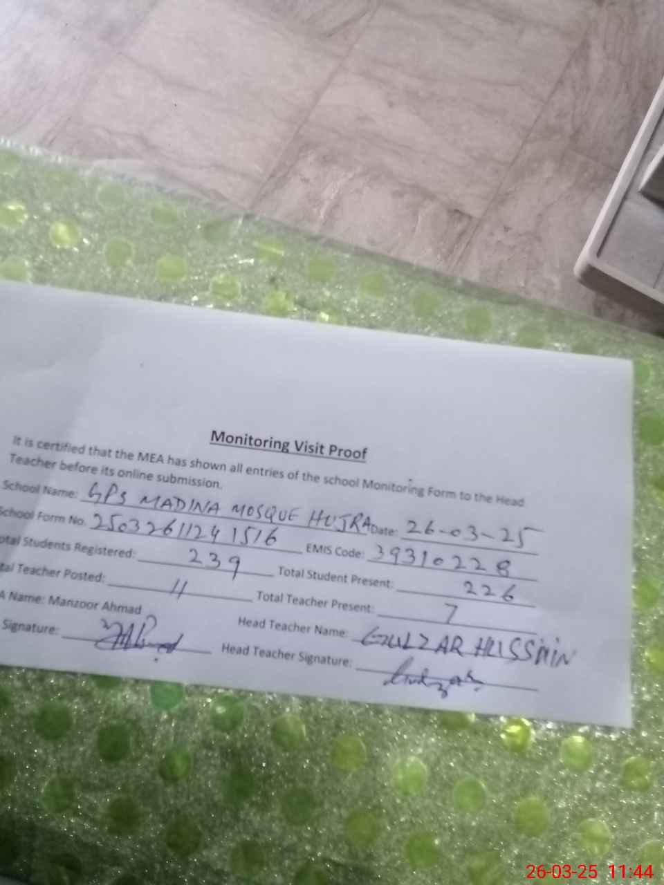 | EMIS Code: 39310228 | Name of School: GPS MADINA MOSQUE HUJRA | |||
