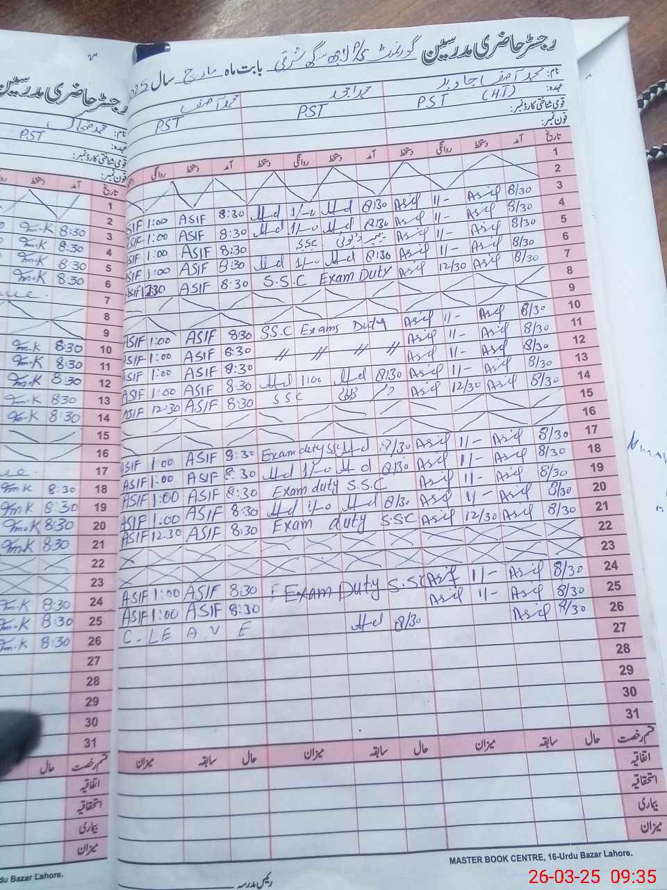 | CNIC | Full Name | Designation | R/C | Absence During Last Calender Month |