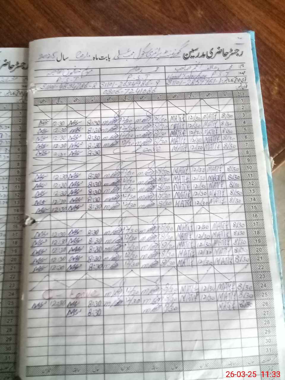 | Name: MAt**** An**** Designation: (School Headmaster's/Headmistress's) PST Phone/Cell Number: 03**** |