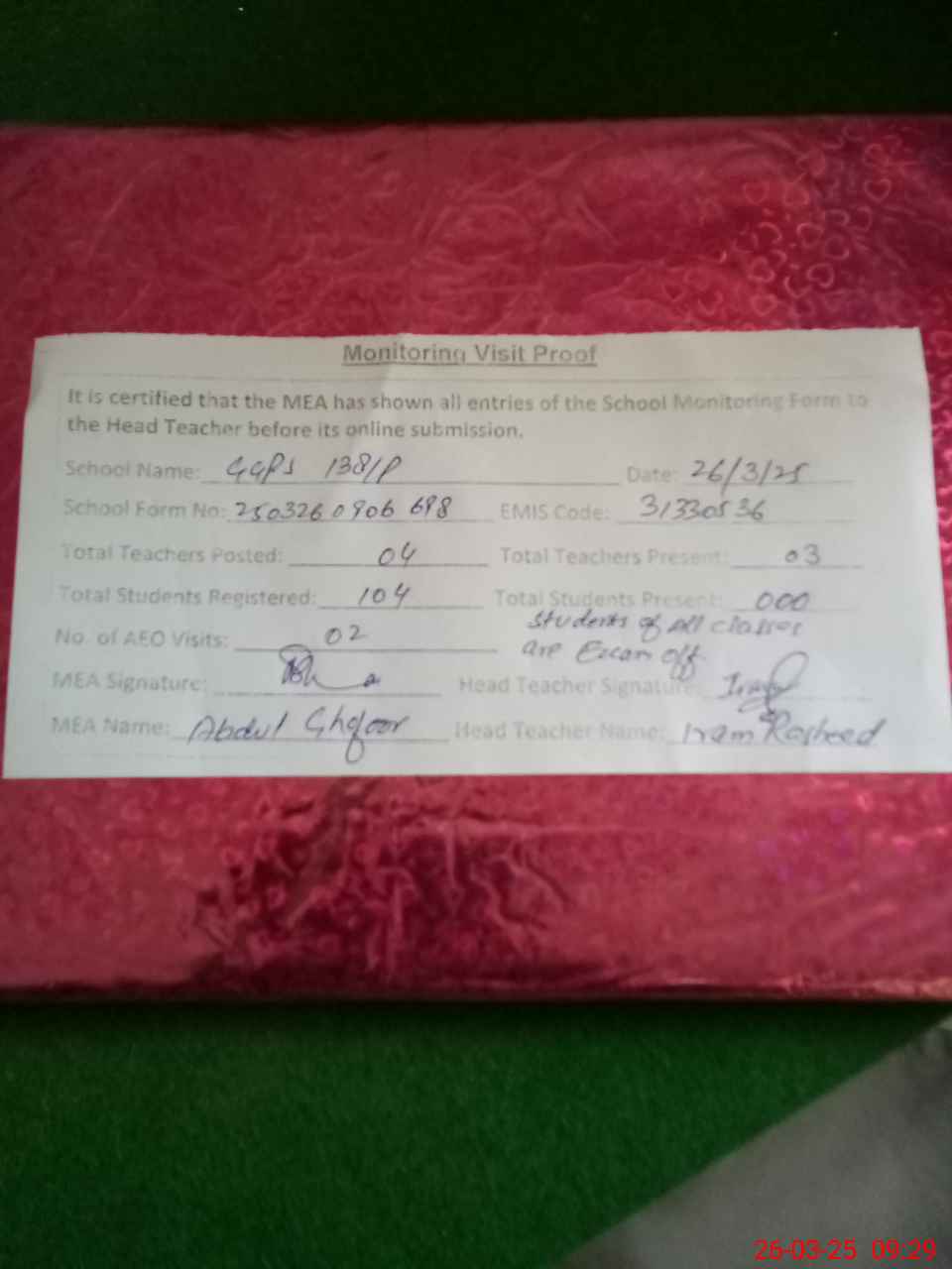 | EMIS Code: 31330536 | Name of School: GGPS 138/P | |||