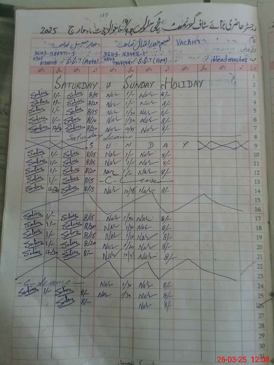 | CNIC | Full Name | Designation | R/C | Absence During Last Calender Month |