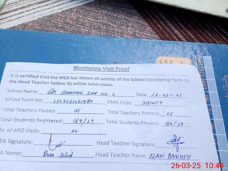 | EMIS Code: 31310119 | Name of School: GPS BAKHAL LAR NO. 2 (After Noon) | |||