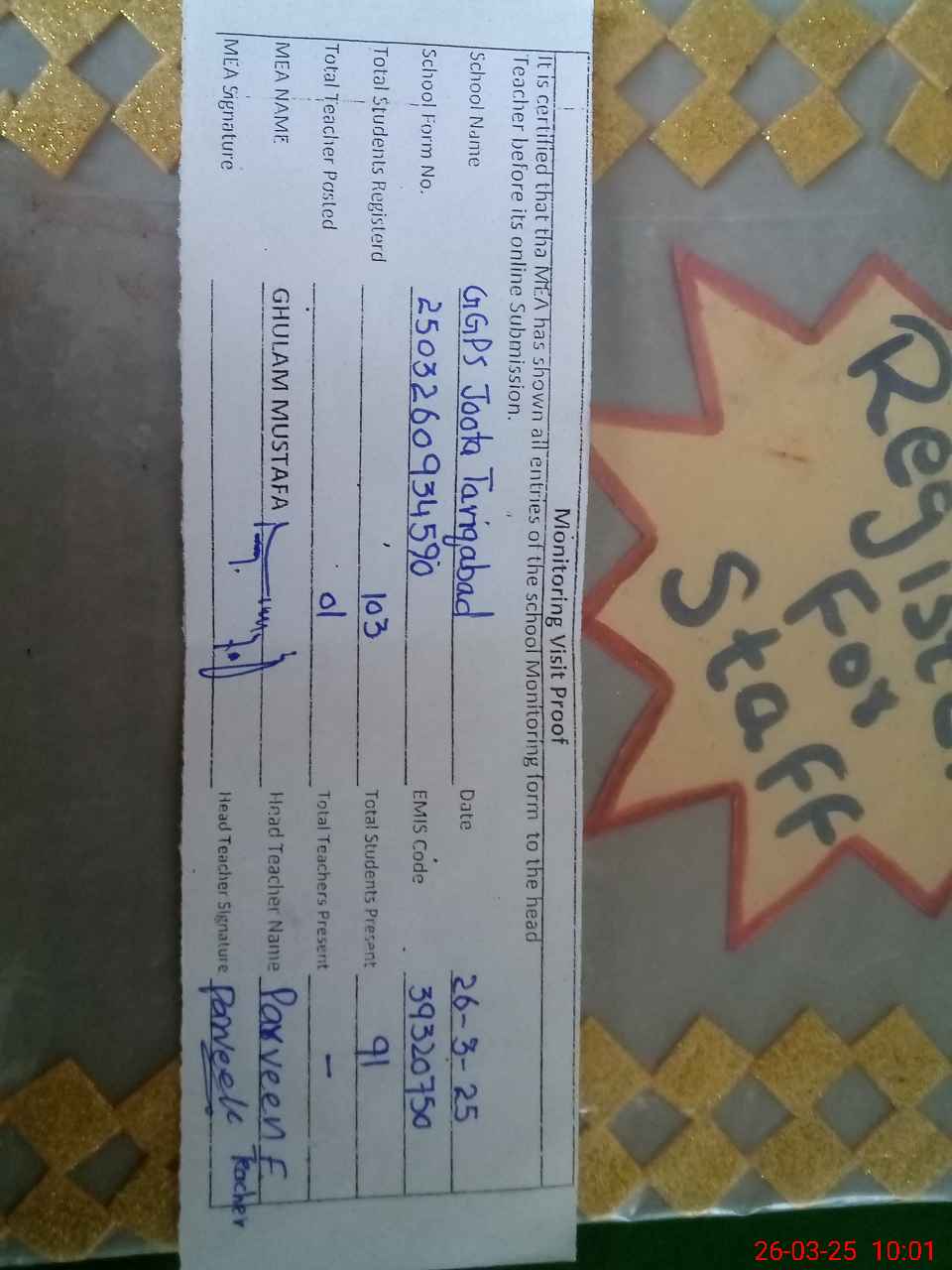 | EMIS Code: 39320750 | Name of School: GGPS CHAK JOOTA / TARIQ ABAD | |||