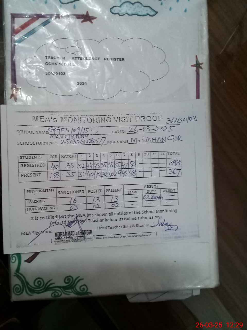 | EMIS Code: 36430103 | Name of School: GGHS 109/15-L, MIAN CHANNU | |||