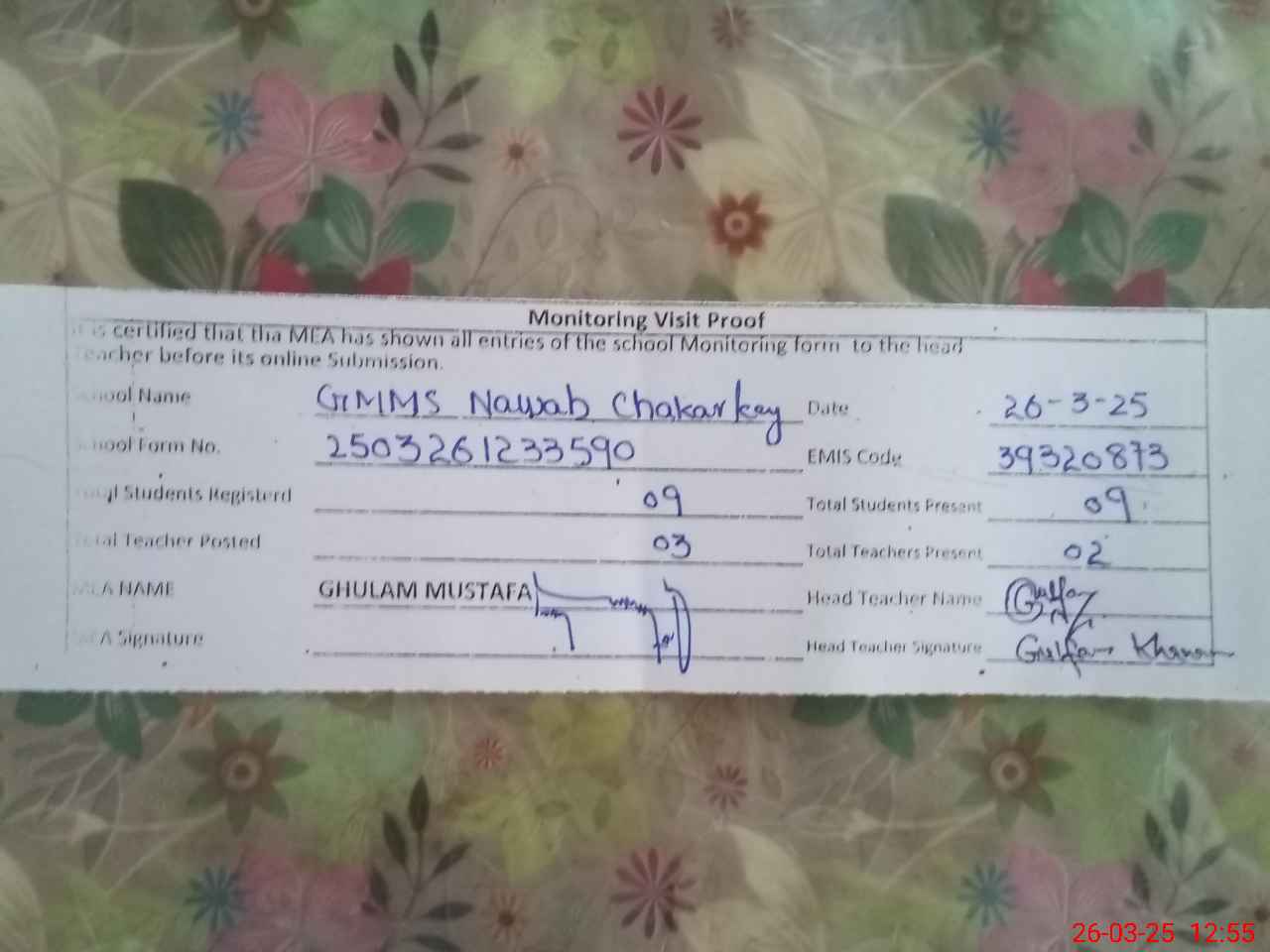 | EMIS Code: 39320873 | Name of School: GMMS NAWAB CHAKAR KE | |||
