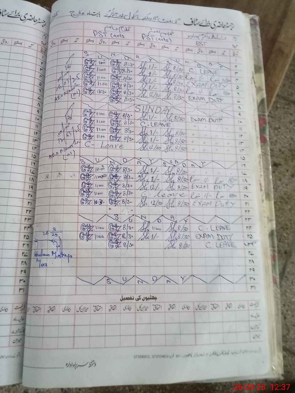 | Name: Gh**** Kh**** Designation: (School Headmaster's/Headmistress's) PST Phone/Cell Number: 03**** |