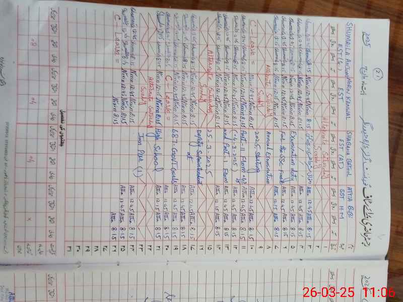 | 31**** | Sh**** Ba**** | EST | Regular | 0 | 0 | 0 | 0 | 0 | 0 | 0 | 0 | 0 | Exam Duty |