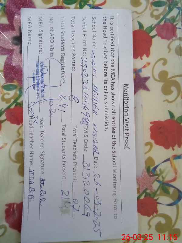 | Certified that this School was Inspected by the Undersigned MEA/DMO Today and the Information Stated Above is as Per Record. | |||||
