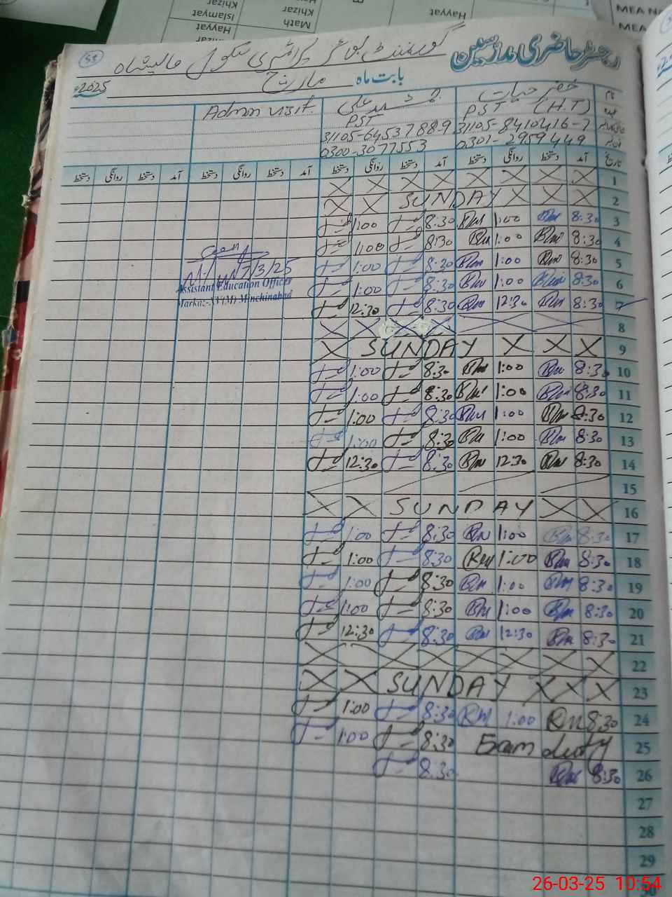 | Name: KH**** HA**** Designation: (School Headmaster's/Headmistress's) PST Phone/Cell Number: 03**** |
