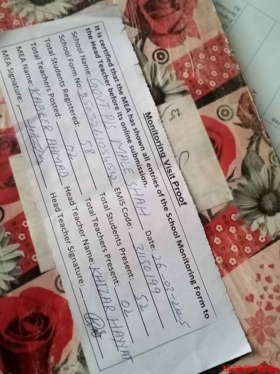 | EMIS Code: 31150199 | Name of School: GPS MALE SHAH | |||