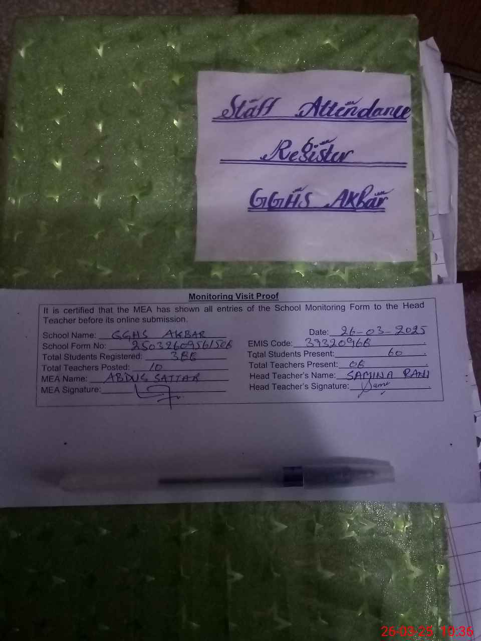 | EMIS Code: 39320968 | Name of School: GGHS AKBAR OKARA | |||