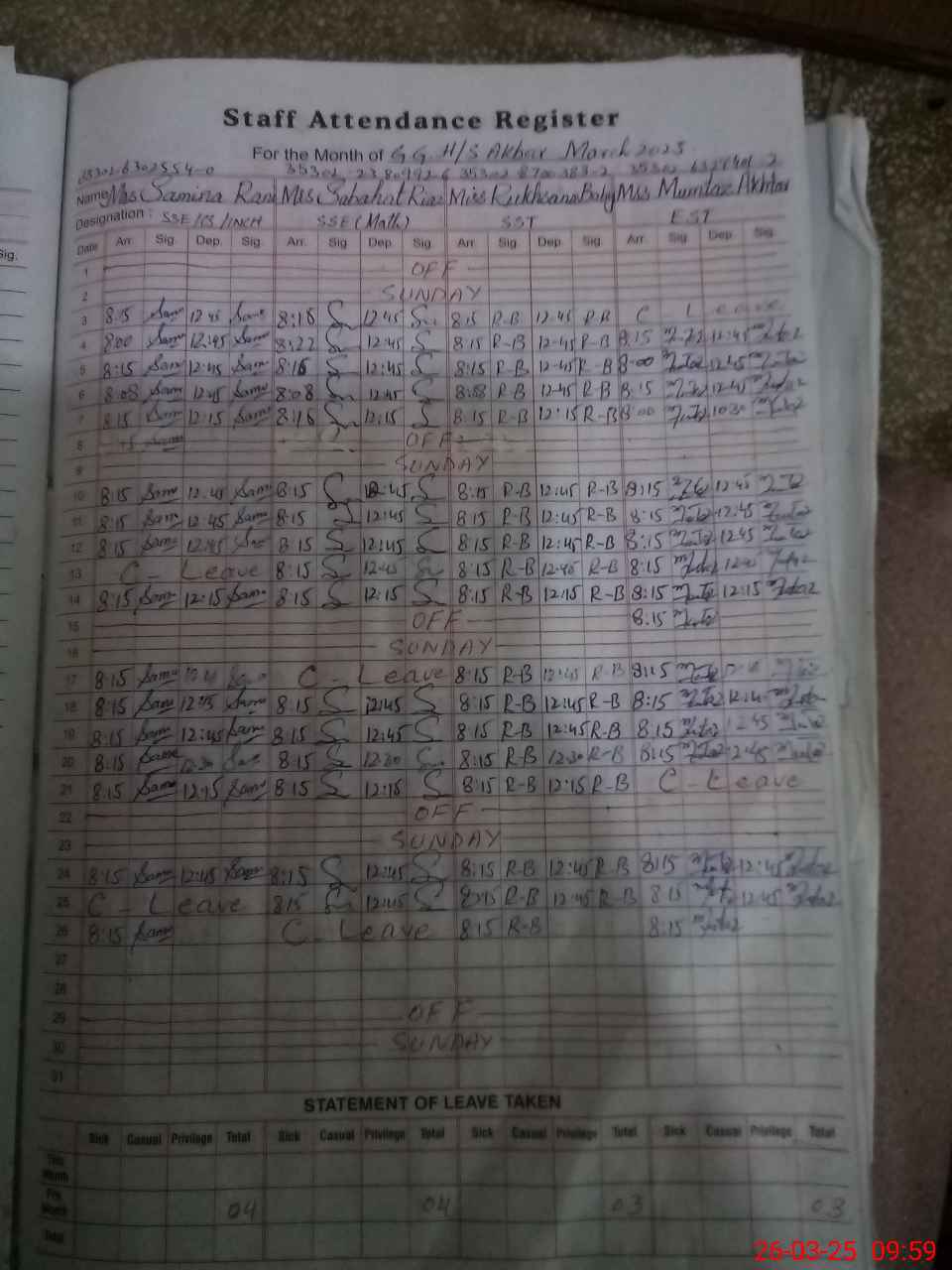 | 35**** | Ri**** Ar**** | Regular | 0 | 0 | 28 | 0 | 0 | 0 | 0 | 0 | 0 | Absent (Un-Authorized) | |