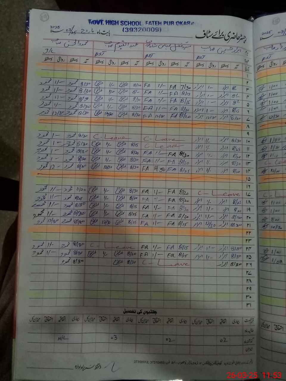 | EMIS Code: 39320009 | Name of School: GHS FATEH PUR | |||
