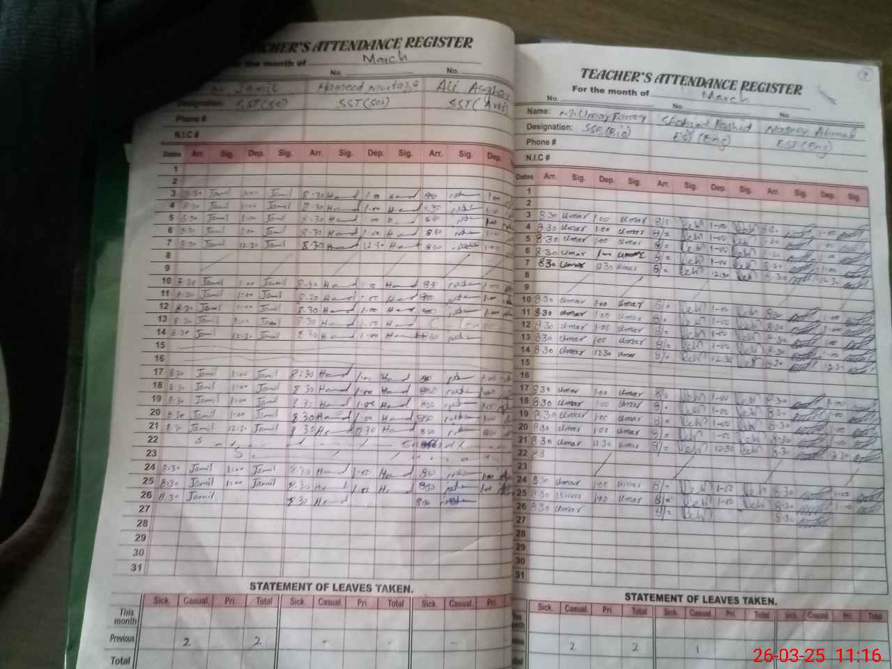 | Leave | Duty | Absent | Maternity | Medical | Ex- Pak |