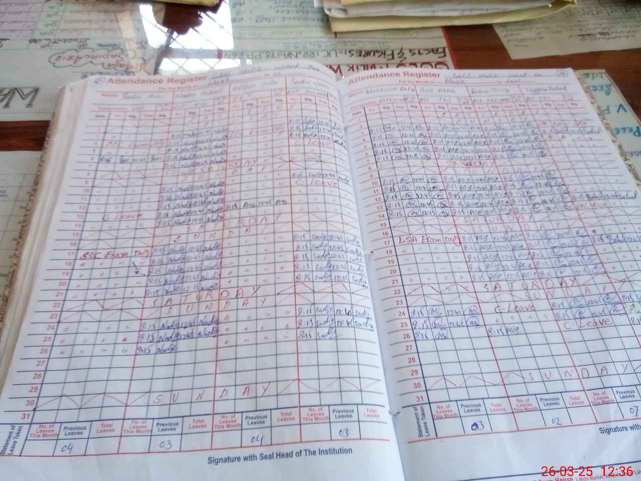 | 31**** | Sa**** Az**** | 2 | 3 | 1 | 0 | 0 | 0 | 0 | 0 | 0 | 3 | Exam Duty | |