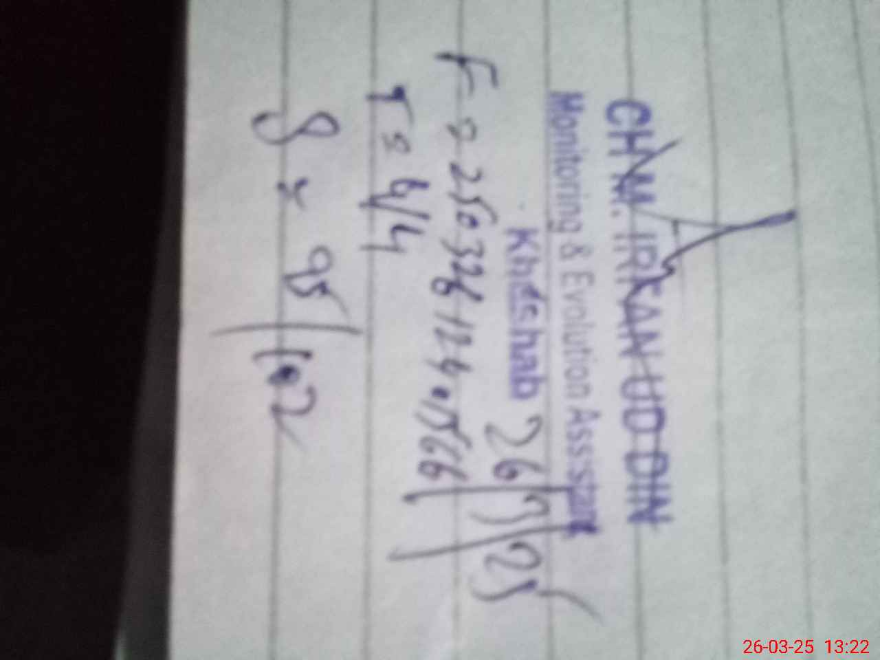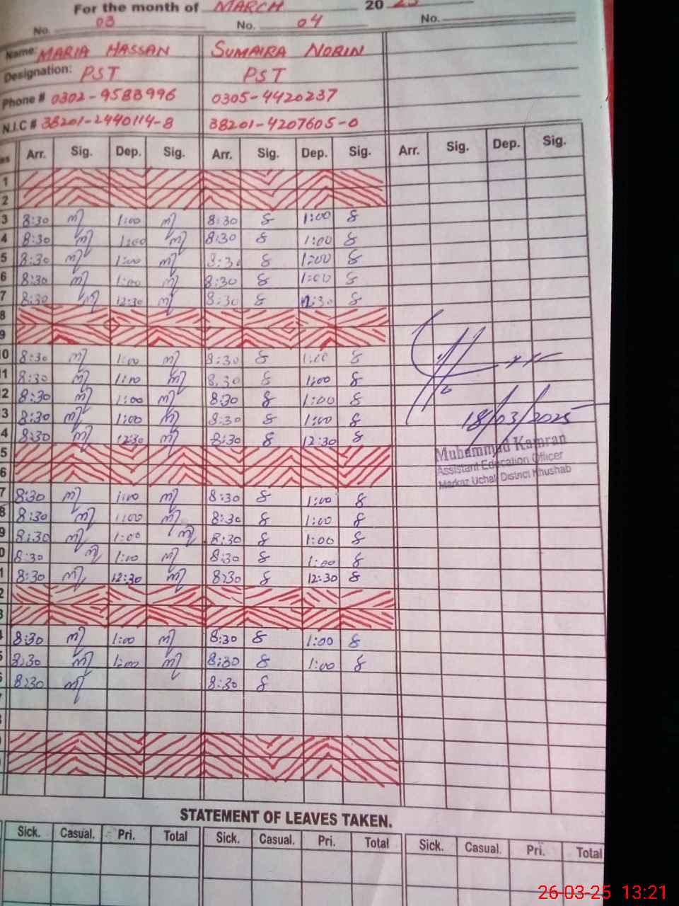 | Name: Ir**** Sh**** Designation: (School Headmaster's/Headmistress's) PST Phone/Cell Number: 03**** |