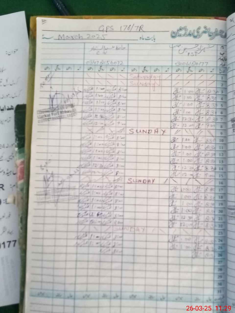 | CNIC | Full Name | Designation | R/C | Absence During Last Calender Month |