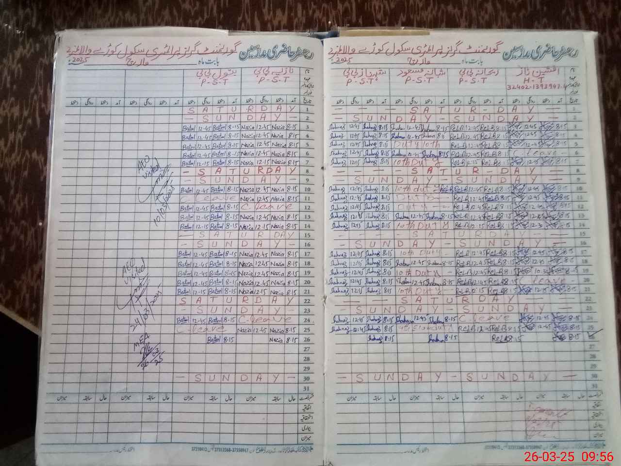 | Leave | Duty | Absent | Maternity | Medical | Ex- Pak |