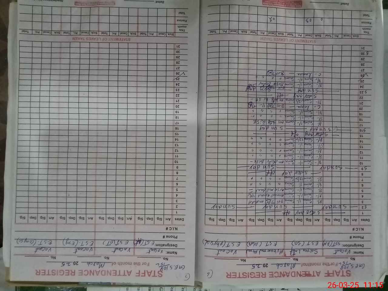 | CNIC | Full Name | Designation | R/C | Absence During Last Calender Month |
