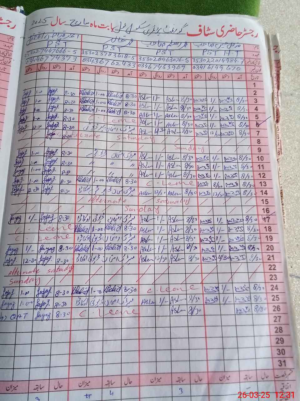 | 35**** | Mo**** Kh**** | PST | Regular | 2 | 0 | 0 | 0 | 0 | 0 | 0 | 0 | 2 | Casual |