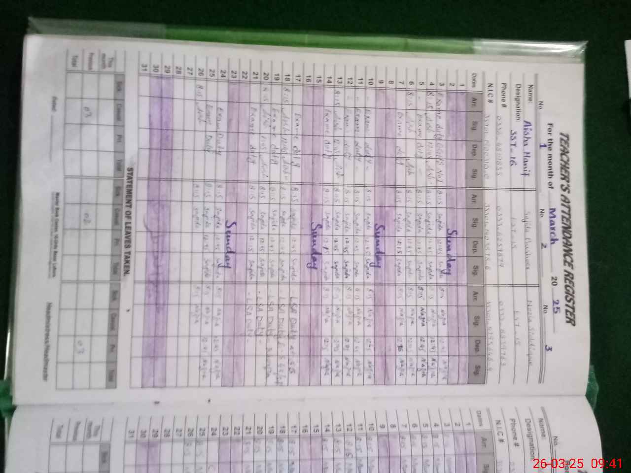 | Name: AI**** HA**** Designation: (School Headmaster's/Headmistress's) SST GENERAL Phone/Cell Number: 03**** |
