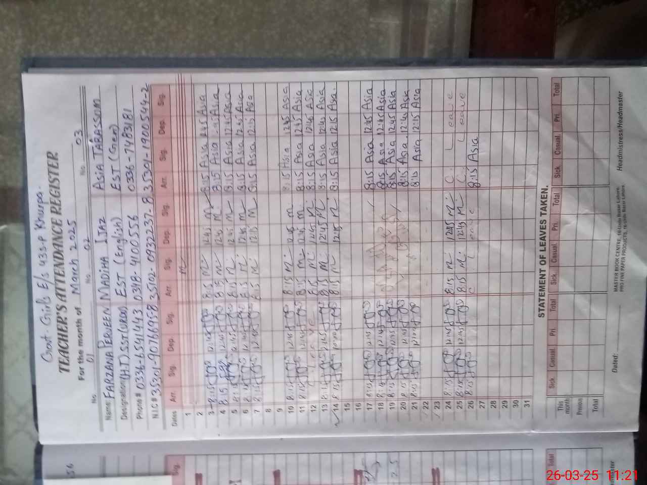 | Name: FA**** PA**** Designation: (School Headmaster's/Headmistress's) SSE Phone/Cell Number: 03**** |