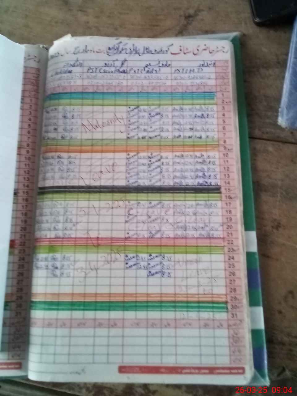 | CNIC | Full Name | Designation | R/C | Absence During Last Calender Month |