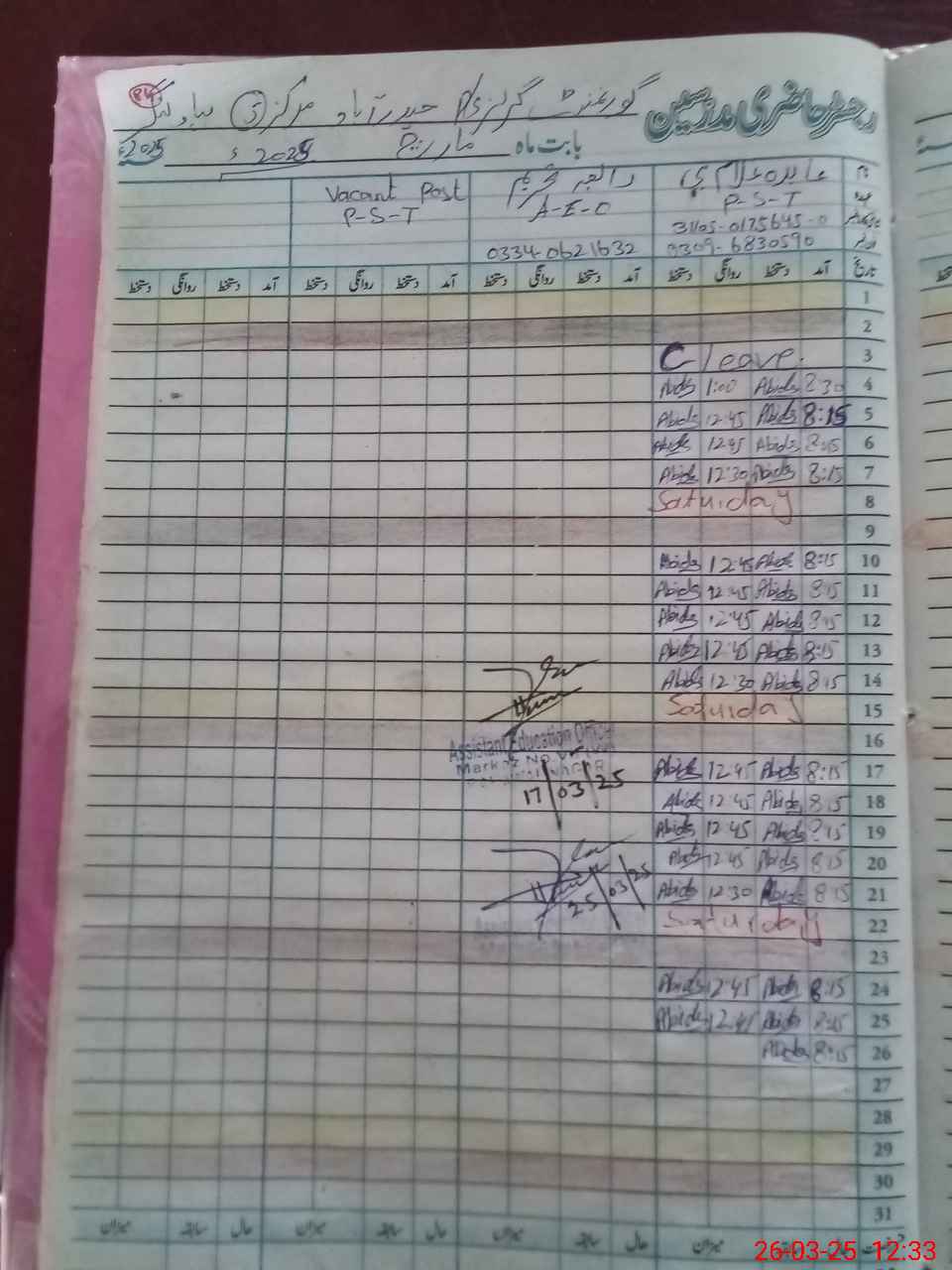 | Name: Ab**** GNa**** Designation: (School Headmaster's/Headmistress's) PST Phone/Cell Number: 03**** |