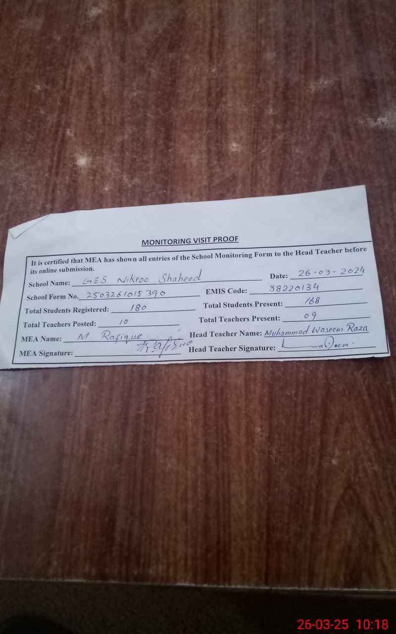 | EMIS Code: 38220134 | Name of School: GES NIKROO SHAHEED | |||