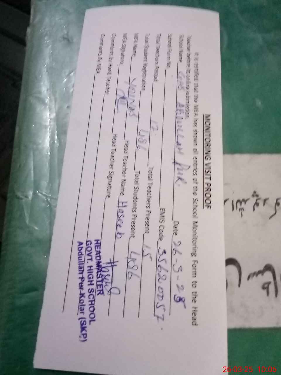 | Name: AH**** RA**** Designation: (School Headmaster's/Headmistress's) SST Sci Phone/Cell Number: 03**** |